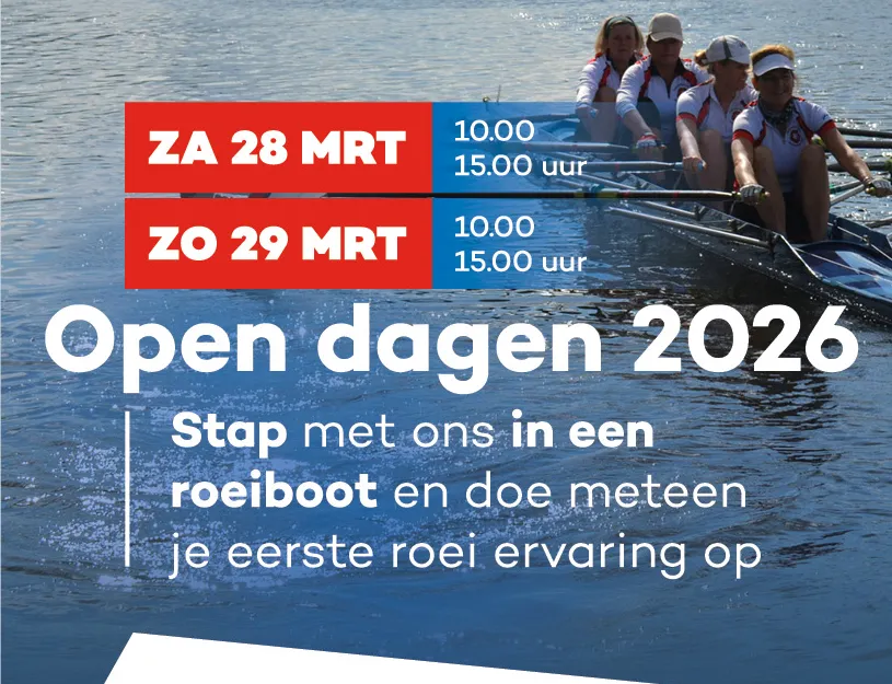 Wil je kilo's kwijtraken? Of gewoon aan je conditie werken? Hou je van bewegen in de buitenlucht en wil je eens wat anders? Misschien is roeien dan iets voor jou. Kom dan kennismaken tijdens de Open Dagen op zaterdag 28 maart en zondag 29 maart van 10:00-15:00 uur.